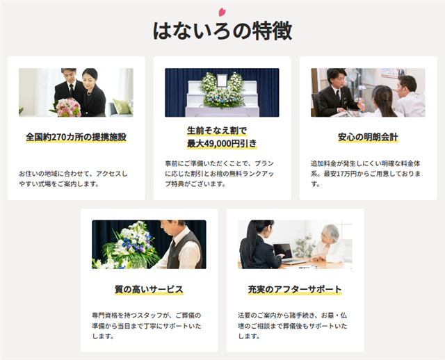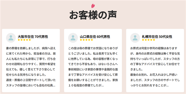 また、全国展開による効率化でコストを抑えつつ、専門スタッフのサポート体制も整っているため、安心して葬儀を任せることができます。
